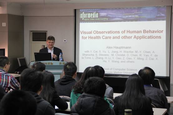 应人工智能与机器人研究所龚怡宏教授的邀请,3月16日上午10:00,卡内基梅隆大学Alexander Hauptman教授在人机所会议室做了题为“Visual Observations of Human Behavior for Health Care and other Applications”的学术报告,介绍了他当前的研究工作,并与老师同学进行了讨论。Alexander Hauptman博士是美国卡内基梅隆大学计算机学院的首席研究员,是国际知名的多媒体研究专家,是世界上最早从事语音识别与多媒体内容分析的学者之一。
