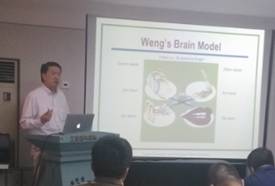 在报告中,JuyangWeng教授主要介绍了他的最新研究成果:有限控制机。JuyangWeng教授以人工智能领域的符号学派为开端,介绍了符号学派存在的问题:它只能处理语法,而不能理解语义,从而引入了通用有限控制机的概念。然后,JuyangWeng教授详细地讲述了通用有限控制机的原理、结构和如何学习得到有限控制机。最后,JuyangWeng教授以智能车中的道路识别过程为例,介绍了有限控制机在智能车领域的应用。