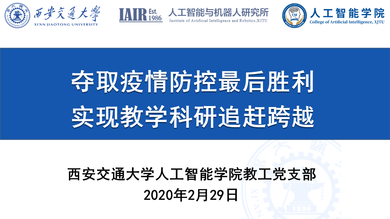 疫情防控期间,郑南宁教授以高度的政治责任感将疫情防控作为科研主战场,针对新型冠状病毒感染肺炎疫情防控和治疗中的痛点问题,迅速调整研究策略,凝聚科研抗疫力量,组织和指导团队开展疫情发展与传播规律的智能预测、智能化疾控系统等科研攻关。该科研攻关既是对学生很有帮助的科研训练,同时为支撑抗击疫情做出贡献。郑老师强调全体师生应该认真思考,如何很好地在线做好科研和学生指导工作。教师在指导学生时,要充分相信学生的自觉性、保护学生的积极性、给予充分的引导和帮助。另外,全体师生做任何事情都要实事求是、脚踏实地。郑老师还强调,特殊时期教师要更加关心学生的生活和科研工作,给与支持和帮助,保障基本的科研条件。