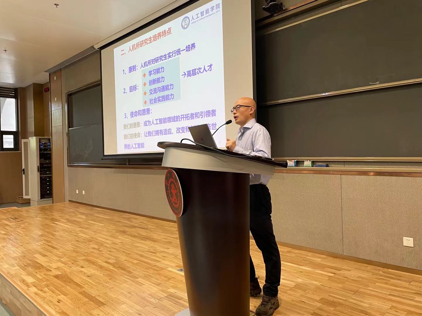 人机所俱乐部主席左炜亮介绍了俱乐部制度,并希望新生加入到人机所俱乐部大家庭中。