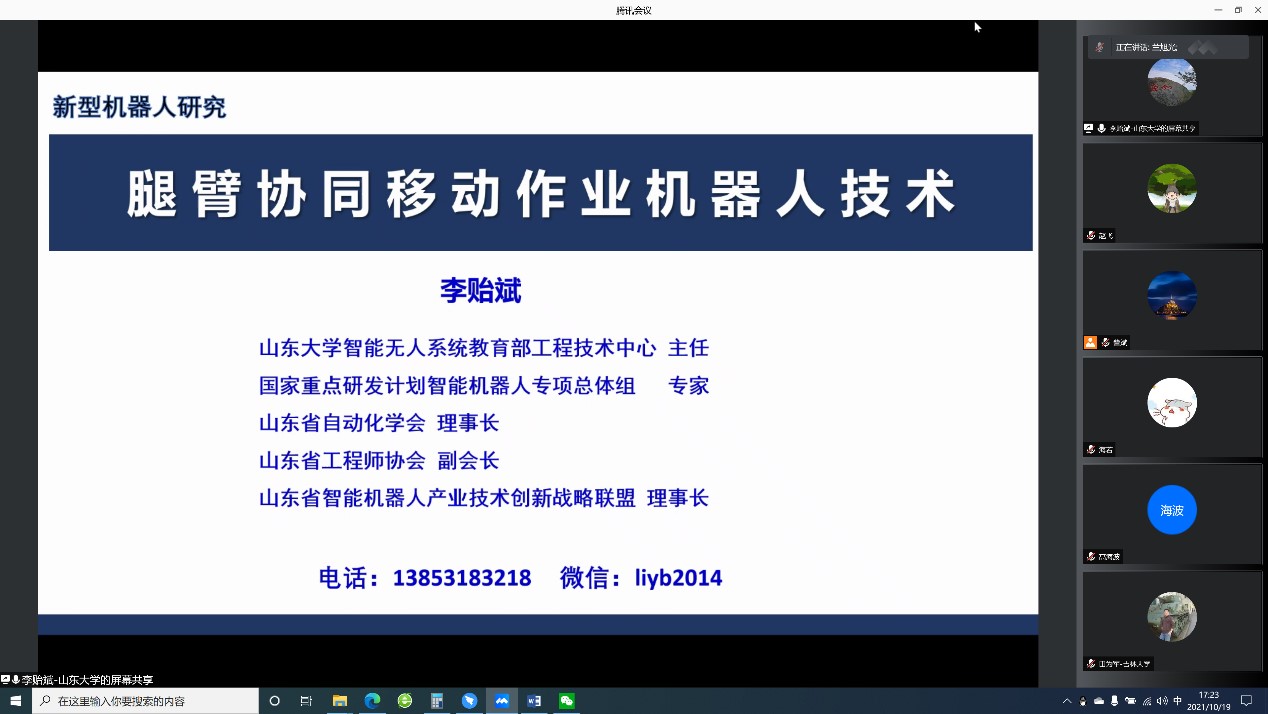 2021年10月19日,为庆祝中国自动化学会成立六十周年,共融机器人专委会邀请国内共融机器人领域著名专家举行线上workshop,为国内外共融机器人领域专家、学者提供交流平台。
