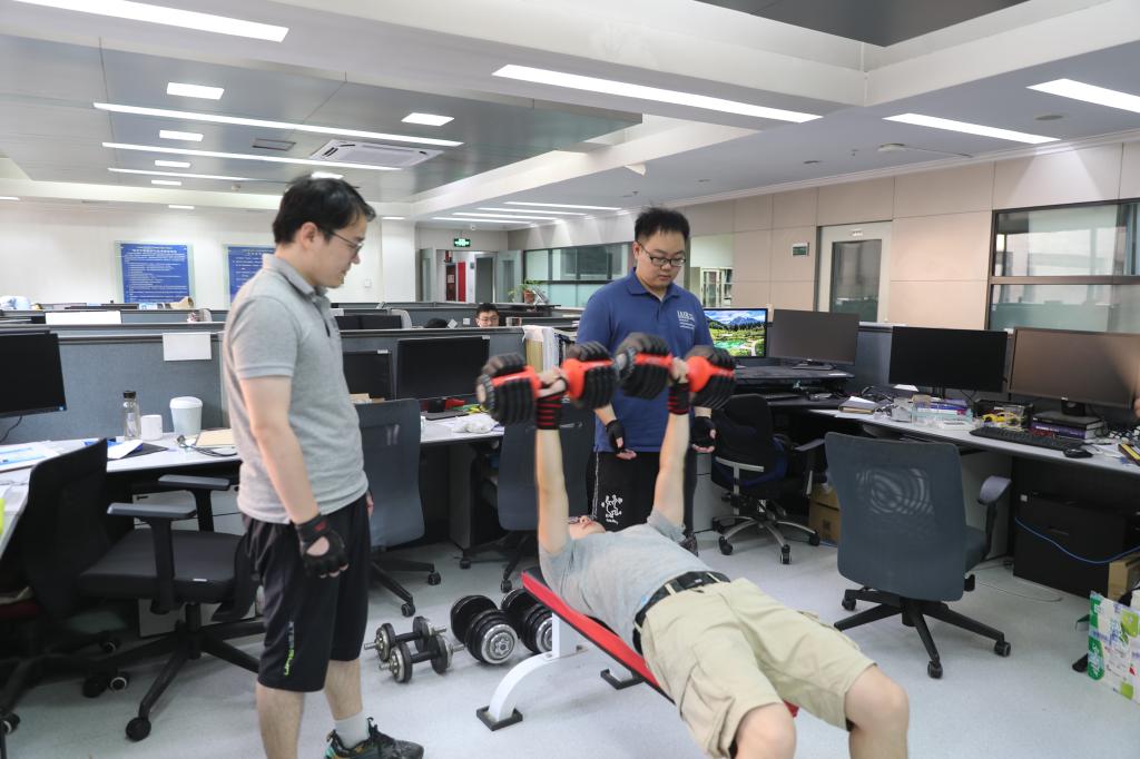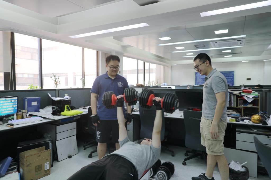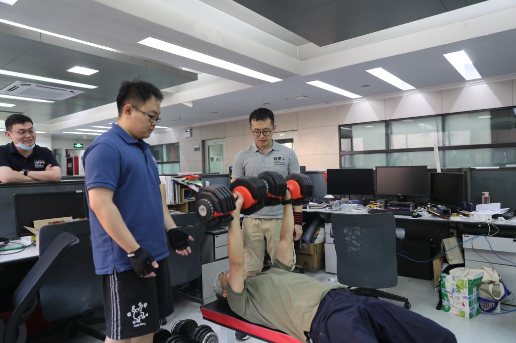 ,随处都能看到体育健身器材,工位旁摆放着健腹轮、划船机、哑铃等。在郑院士的团队里,“体育达人”层出不穷。“没事推两组?”是团队师生打招呼“常用语”,意思是要么卧推哑铃,要么站推健腹轮,一组12个。他们经常在工作学习间隙自发组织一场小型PK,参赛“选手”铆足劲把动作做标准,围观群众要么拍手称赞,要么也加入比赛。世界博彩公司排名