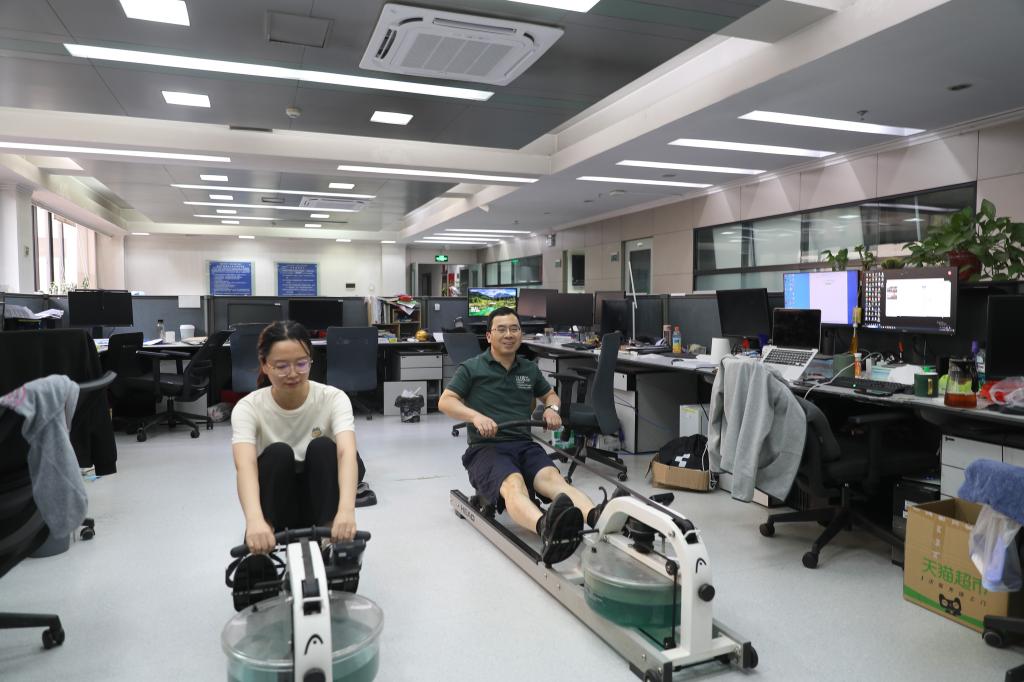 疫情之前,团队内部的“铁人三项赛”是骑行六七十公里,又登山,回来以后再游泳,当时能做到这些的只是少数人。但可喜的是,每一项运动项目,参与的人都在逐年增加,骑行队的规模也在扩大。坚持骑行30多年的郑院士说:“骑行体会到的不仅是运动的快乐,还能感受到城市的发展变化,让我们更加热爱这片热土。”这两年遇到疫情,“铁人三项赛”的内容变更为俯卧撑,站推健腹轮和划船机,每个人在规定时间内完成的数目最多,就赢得比赛。