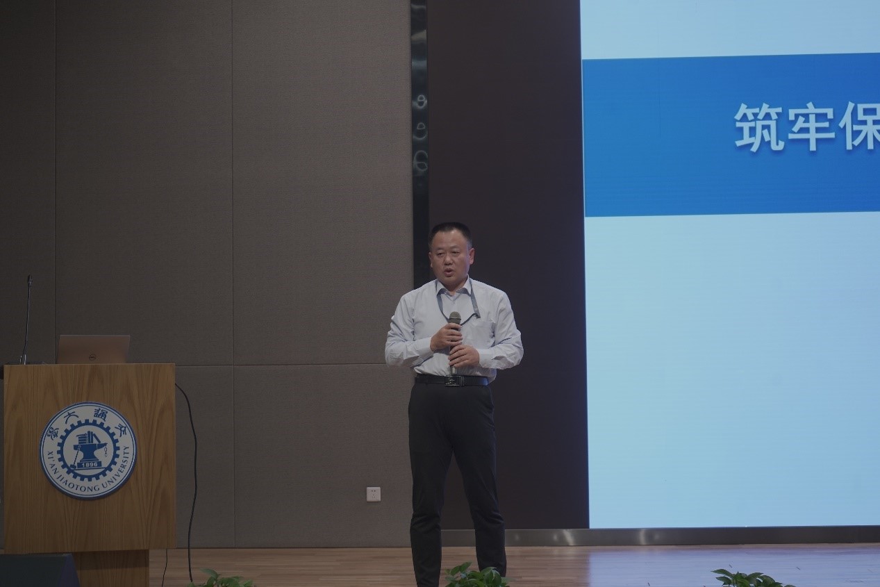 电信学部党委副书记史峰希望各位同学能把导师当作校内最亲近的人,遇到挫折困难要向导师求助。提醒同学们要始终把安全放在第一位,谨防电信诈骗、注意消防安全。