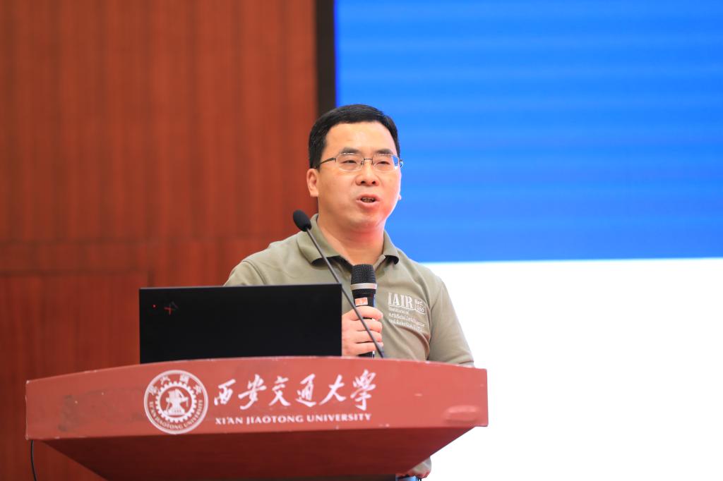 人机所副所长、学院执行院长辛景民教授总结了研究所和学院过去一年的标志性事件,包括获批人机混合增强智能全国重点实验室、获研究生国家级教学成果一等奖、学院独立设置等。他勉励广大师生,“心有所信,方能致远”,并希望大家认真聆听特邀专家的精彩报告,分享自己的真知灼见,推进学院科研工作新的发展。