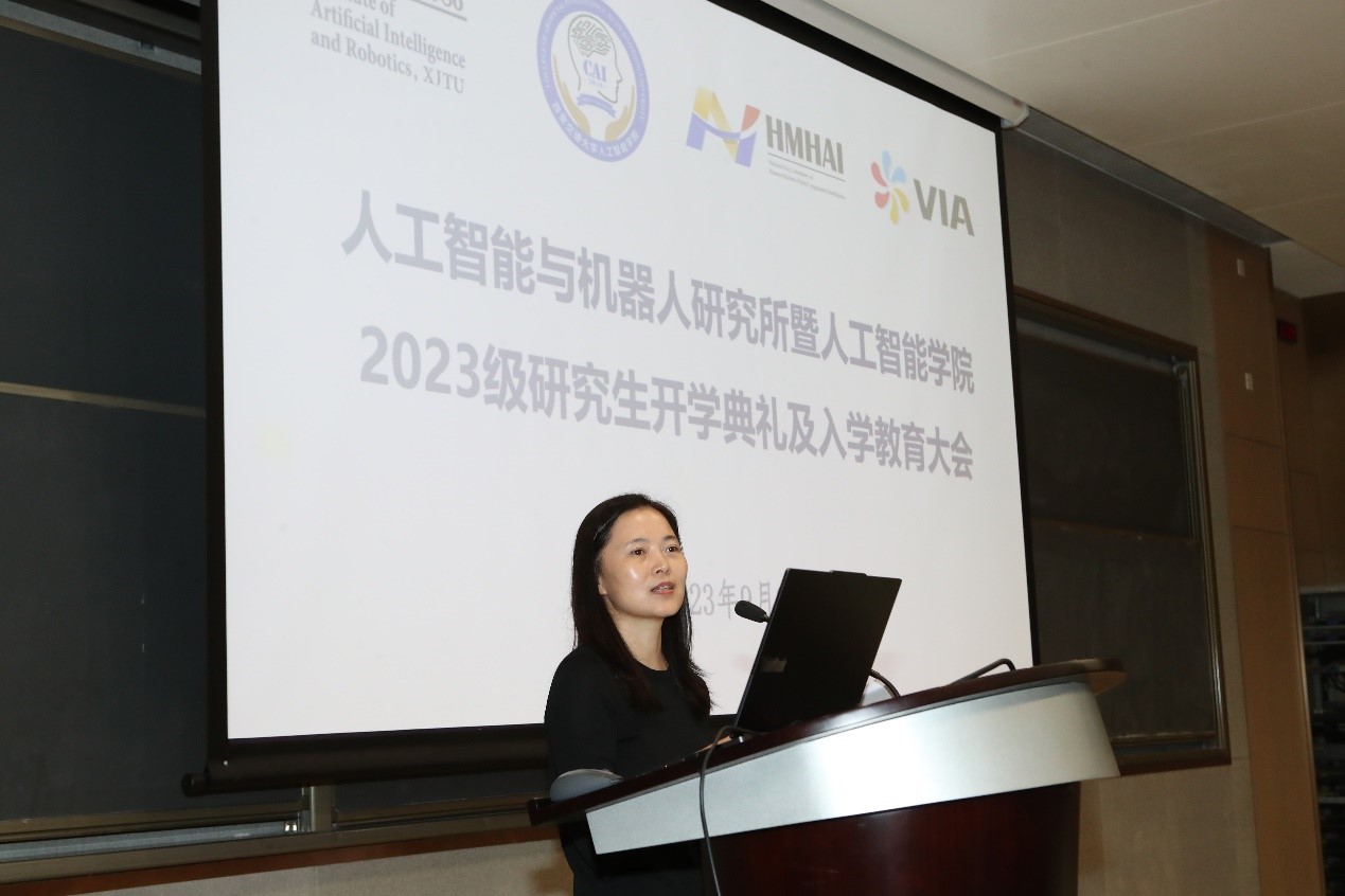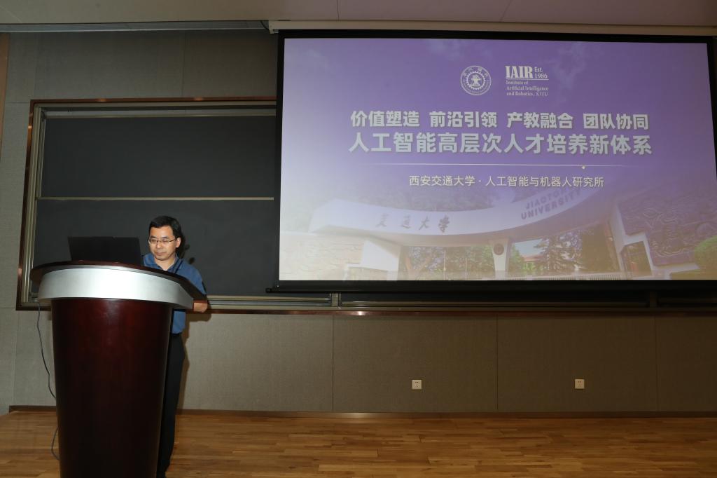 执行院长辛景民教授介绍了学院及人机所基本情况。人机所在37年的发展过程中,取得了一批在国内外具有重大影响的成果,培养了一批学术界和产业界的领军人才,成为高水平创新人才培养的重要基地。特别是, 2021年视觉信息处理与应用国家工程实验室顺利通过国家发改委组织的科技创新基地优化整合,更名为“视觉信息与应用国家工程研究中心”;2022年底获批“人机混合增强智能全国重点实验室”,打破我校27年来无新增国重的困局;人工智能高层次人才培养体系获2022年(首届)国家级研究生教学成果一等奖。人机所以国家重大需求为导向,坚持聚焦人工智能前沿和重大应用,加强学科交叉,助力国之重器,推动产业技术创新。独具特色的研究生培养模式在全国形成广泛辐射和重要影响力。